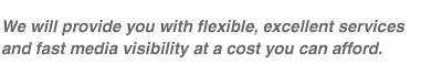 An ongoing program will allow us to build continuity and momentum, and develop press contacts on your behalf. You will have absolute control over your budget and no long-term contract.